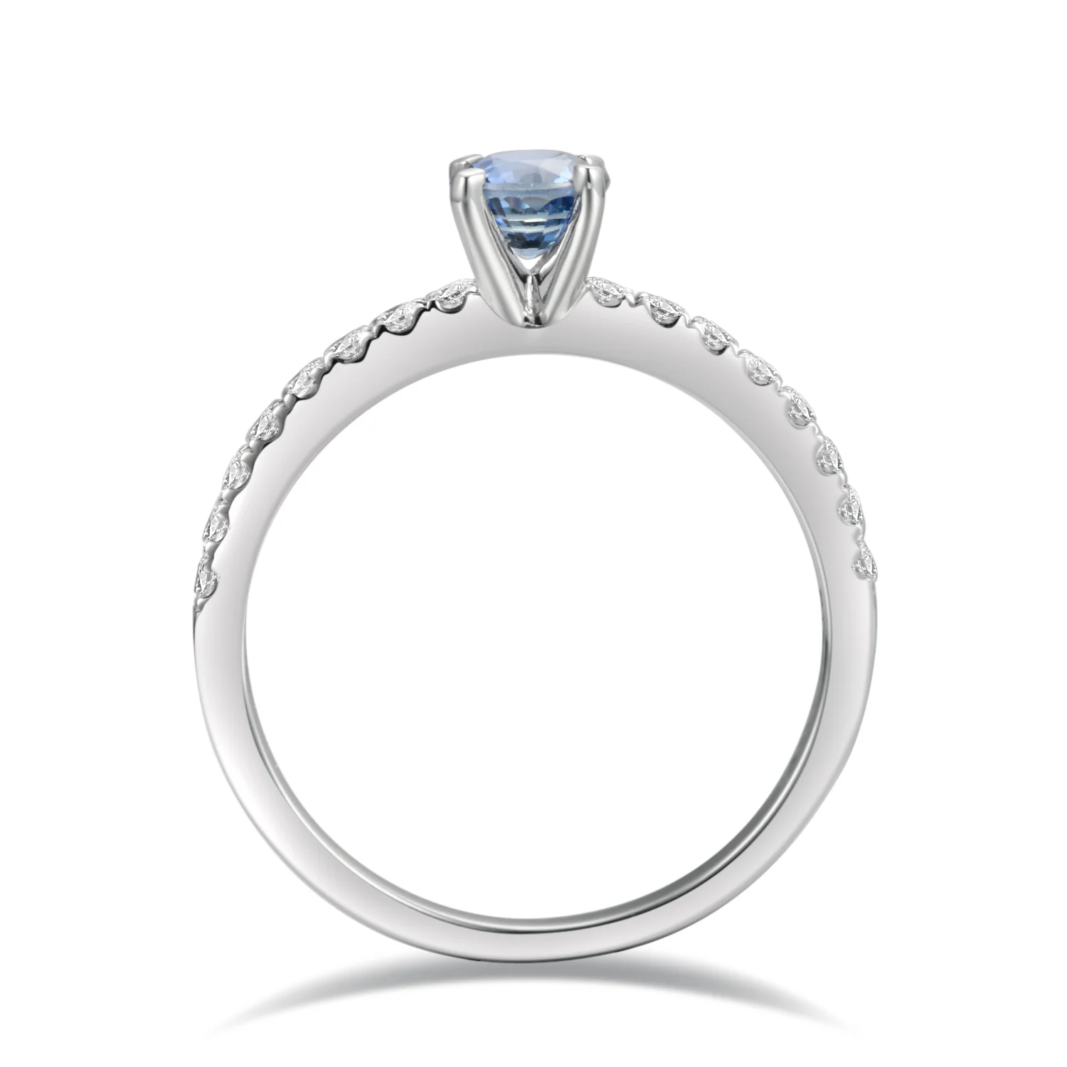 Anillo de Compromiso Solitario pave grifas con Zafiro Azul