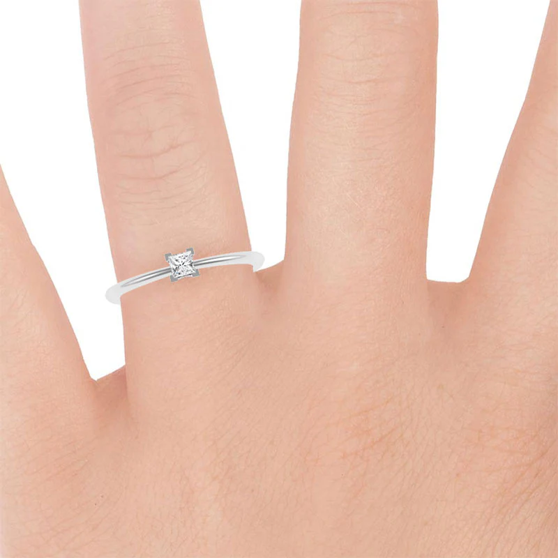 Una mezcla perfecta de elegancia y simplicidad. Este modelo presenta un Diamante corte princesa, la que es conocida como la segunda forma de Diamante más popular en el mundo de los anillos de compromiso. Por su hermoso brillo y talla excepcional, el diamante de talla princesa es el más solicitado para anillos de compromiso.